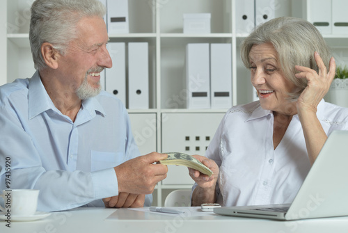 © aletia2011, Fototapeta premium senior couple with laptop and money