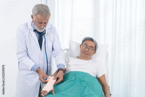 Obraz premium Senior doctor use elastic bandaging the arm of patients