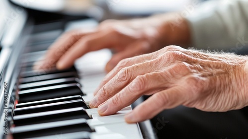 Fototapeta premium Senior Hands Playing Piano Keys Close Up