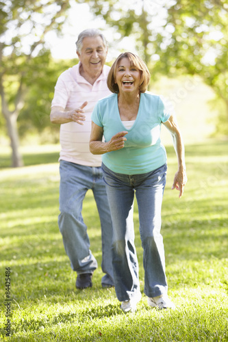 Fototapeta premium Senior Hispanic Couple Running In Park
