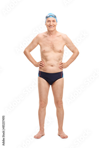 © Ljupco Smokovski, Fototapeta premium Senior in black swim trunks and blue swimming cap