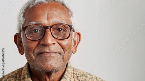 Obraz premium Senior Indian Man with Eyeglasses Smiling in Neutral Portrait Setting
