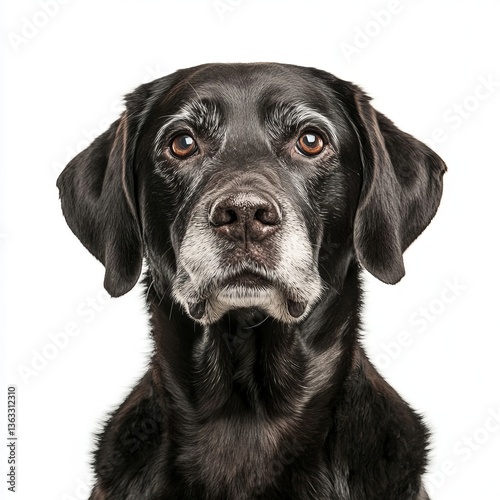 © Nataliia, Fototapeta premium Senior Labrador retriever with a gentle face and a few gray hairs around its muzzle isolated on a white background