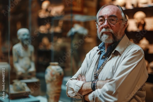 © Kamonwan, Naklejka premium Senior male archaeologist in museum storeroom