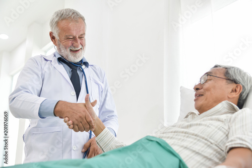 Obraz premium Senior male Doctor is talking with Asian male patient.
