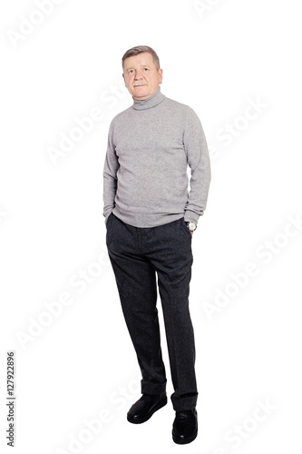 © millaf (Nemchinova), Fototapeta premium Senior Man Businessman wearing Roll Neck Jumper In Grey Isolated