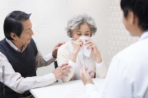 © Blue Jean Images, Obraz premium Senior man consoling wife in hospital