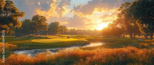 © kong, Obraz premium Senior Man Enjoying Golf Playing with Cart and Clubs on a Sunny Day