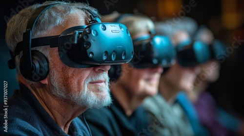 © BEN, Obraz premium Senior Man Experiencing Virtual Reality Headset Technology