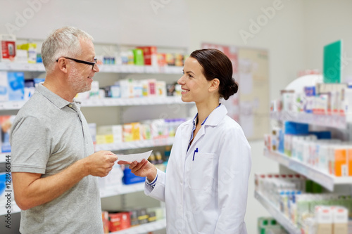 © Syda Productions, Obraz premium senior man giving prescription to pharmacist
