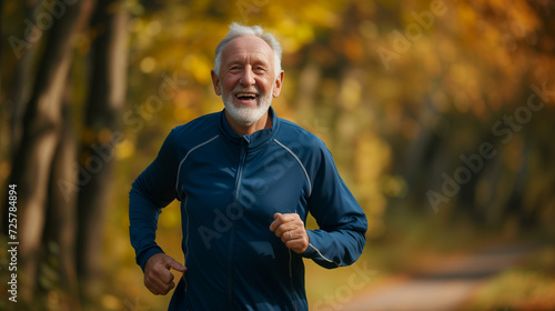 © Muhammad, Obraz premium Senior man going for a run and living a healthy lifestyle for longevity