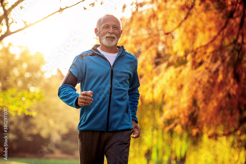 © ivanko80, Obraz premium Senior man jogging outdoors.