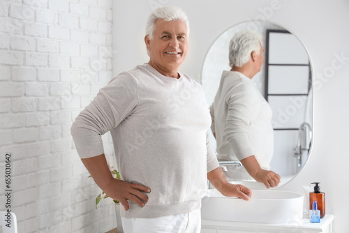 Fototapeta premium Senior man looking in mirror at home