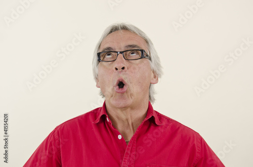 Obraz premium Senior man looking surprised upwards