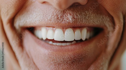 © 69, Obraz premium Senior man smile in close-up, highlighting white teeth and oral hygiene, perfect for dental clinic advertisements.