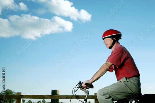 © ImageHit, Fototapeta premium Senior man with helmet riding on bicycle