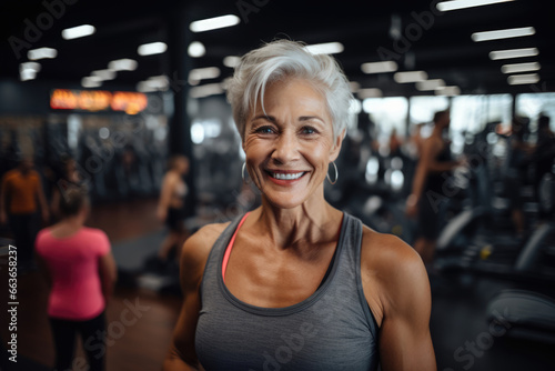 © Michael, Fototapeta premium Senior woman selfie in the gym