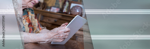 © thodonal, Obraz premium Senior woman using tablet. panoramic banner