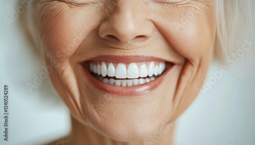 Obraz premium Senior woman with radiant smile, displaying healthy white teeth and embracing positive aging with confidence