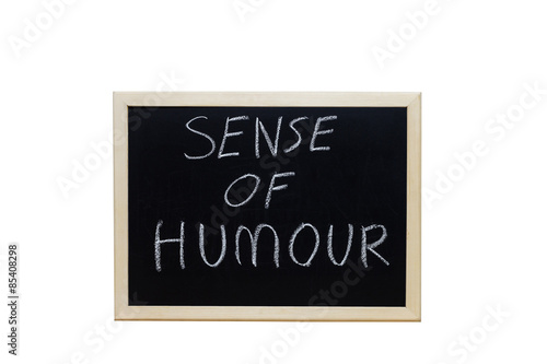 © ijetdo, Obraz premium SENSE OF HUMOUR written with white chalk on blackboard.