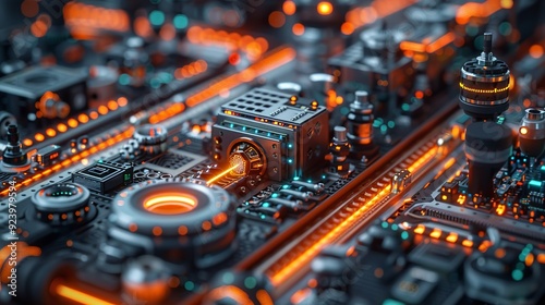 © DARIKA, Fototapeta premium Sensors and metrology background focusing on precision measurement, advanced sensor technologies, and their critical role in scientific research and technological advancements. high resolution