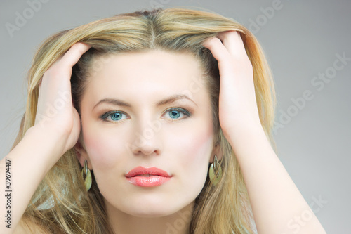 Fototapeta premium sensual blonde woman having golden jewelry