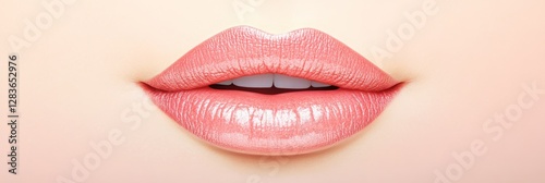 Obraz premium Sensual female lips adorned with glossy pink lipstick, highlighting perfect...