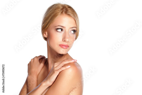 © vladimirfloyd, Fototapeta premium sensual portrait of a young blonde on a white background