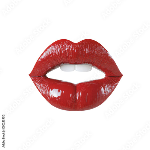 Obraz premium Sensual Red Lips with Glossy Finish - Close-Up Shot