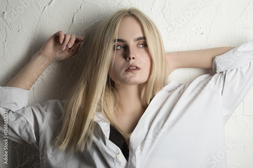 © tugolukof, Fototapeta premium sensual sad blond girl looking at camera