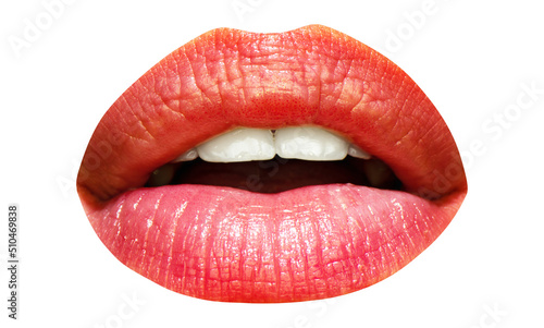 Obraz premium Sensual woman lips. Womans lip. Girl mouth close up with red lipstick. Sexy lips.