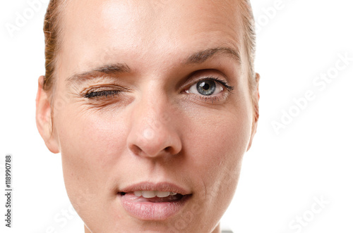 © michaelheim, Fototapeta premium Sensual young woman winking at the camera