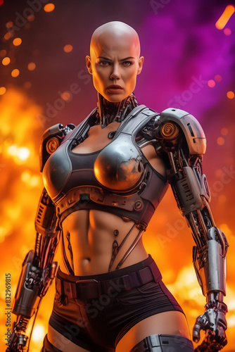 Fototapeta premium Sentinel: Futuristic AI Robotic female Soldier