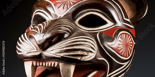 Naklejka premium Senufo Boloye Panther Dance Mask. A close-up of a carved panther mask used in...