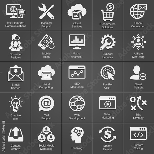 © Moofer, Fototapeta premium SEO and Development icon set on black