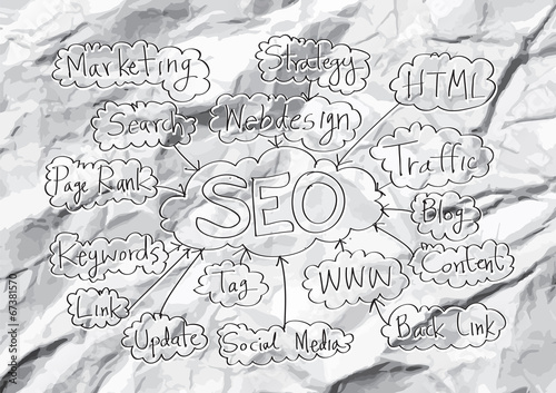 Obraz premium Seo Idea SEO Search Engine Optimization on crumpled paper