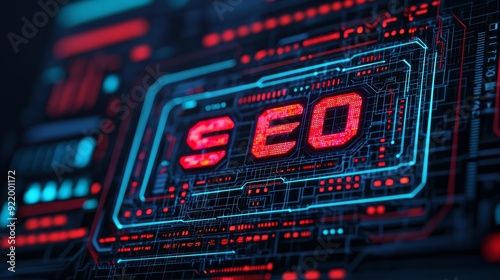Obraz premium SEO keyword cloud, digital tools, holographic interface, futuristic tech design