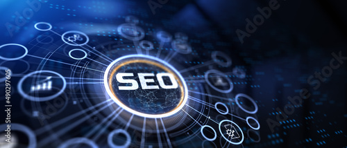 © Murrstock, Obraz premium SEO Search engine optimisation digital marketing concept.