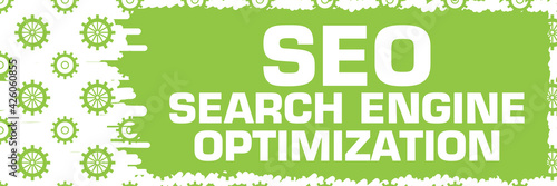 Fototapeta premium SEO - Search Engine Optimization Green Gears Scratch Background Horizontal