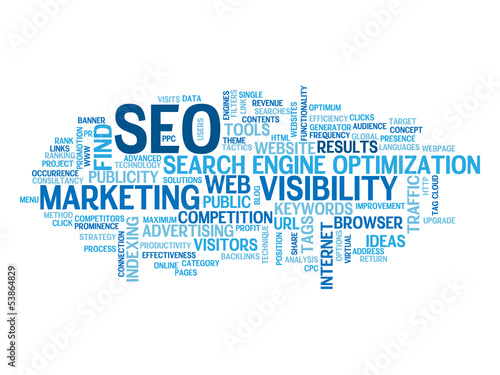 © Web Buttons Inc, Obraz premium "SEO" Tag Cloud (search engine optimization traffic visibility)