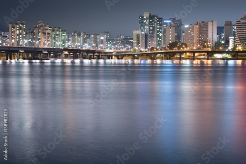 Naklejka premium Seoul City at Night and Han River, Yeouido, South Korea