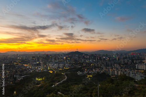 Naklejka premium Seoul city sky line , south korea, showing landmark Seoul tower in the...