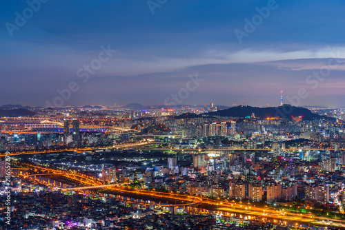 © CJ Nattanai, Naklejka premium Seoul City Skyline,South Korea
