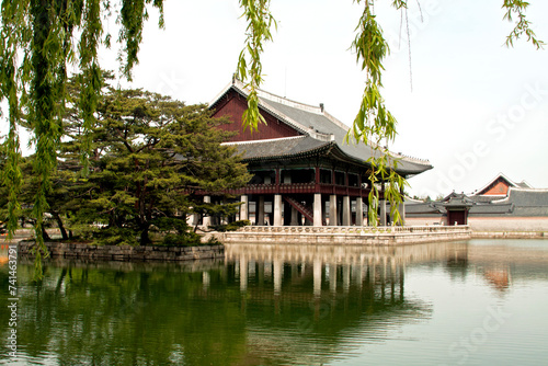 Fototapeta premium SEOUL, KOREA - MAY 17, 2015: Gyeonghoeru Pavilion of Gyeongbokgung Palace,...