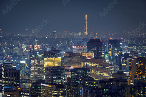 © Dmitry Rukhlenko, Naklejka premium Seoul skyline in the night, South Korea.
