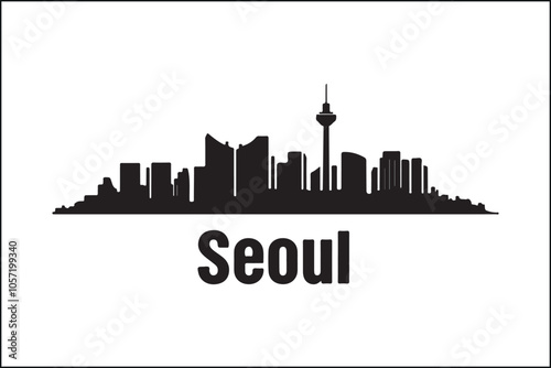 © silhouette stock , Naklejka premium Seoul Skyline Silhouette Vector | Digital Cityscape IllustrationSeoul City Vector Art | Modern Urban Silhouette DesignSeoul Skyline SVG | Minimalist South Korea SilhouetteSeoul Silhouette Digita
