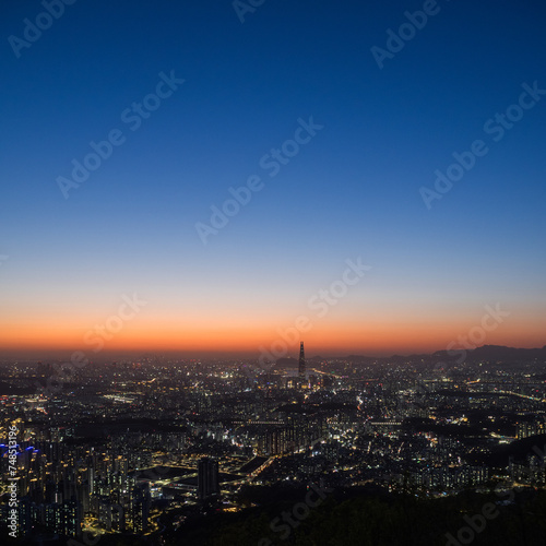 © YoungHwan, Obraz premium Seoul, South Korea - 8.April.2023: The view from namhansansung (fortress) south gate .