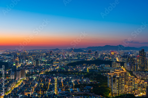 © Sky view, Naklejka premium Seoul south korea landscape and sunset sky
