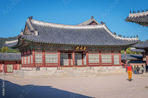 Fototapeta premium Seoul, South Korea - October 20 2024 "Beautiful architecture of Gyeongbokgung...