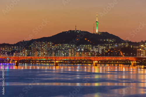 Obraz premium Seoul Subway and Bridge at Hanriver in Seoul, South korea